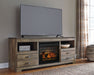 Trinell - 63" TV Stand With Glass/Stone Fireplace Insert - Brown