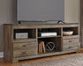 Entertain a rugged yet refined sense of style with this TV stand with fireplace insert. Rustic finish and plank-style details pay homage to reclaimed barn wood, while metal banding with nailhead accents infuses a touch of industrial cool. Ultra clean lines ensure a look that can go from the country... Read More